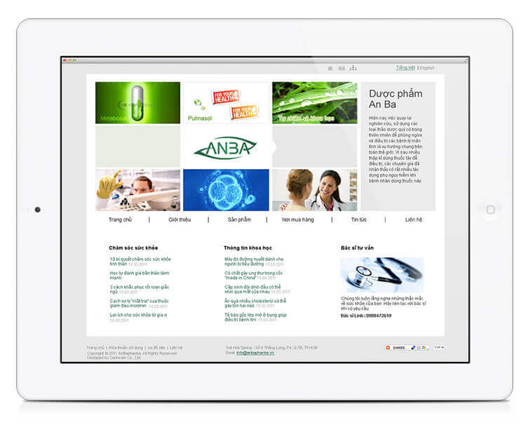 An Ba Pharma là nhà cung cấp các sản phẩm từ thảo dược kết hợp đông và tây y, đặc trị các bệnh đái tháo đường, hen suyễn, … Với phương châm “Đặt chữ Tâm trên từng sản phẩm”, An Ba Pharma luôn cam kết mang đến những sản phẩm uy tín, chất lượng cho xã hội. Năm 2010, An Ba Pharma tìm đến với Cánh Cam để được tư vấn dịch vụ thiết kế website nhằm tạo dựng bộ mặt trực tuyến của công ty nhằm đưa thương hiệu An Ba và các sản phẩm dược đông tây y đến gần hơn với nguời tiêu dùng.