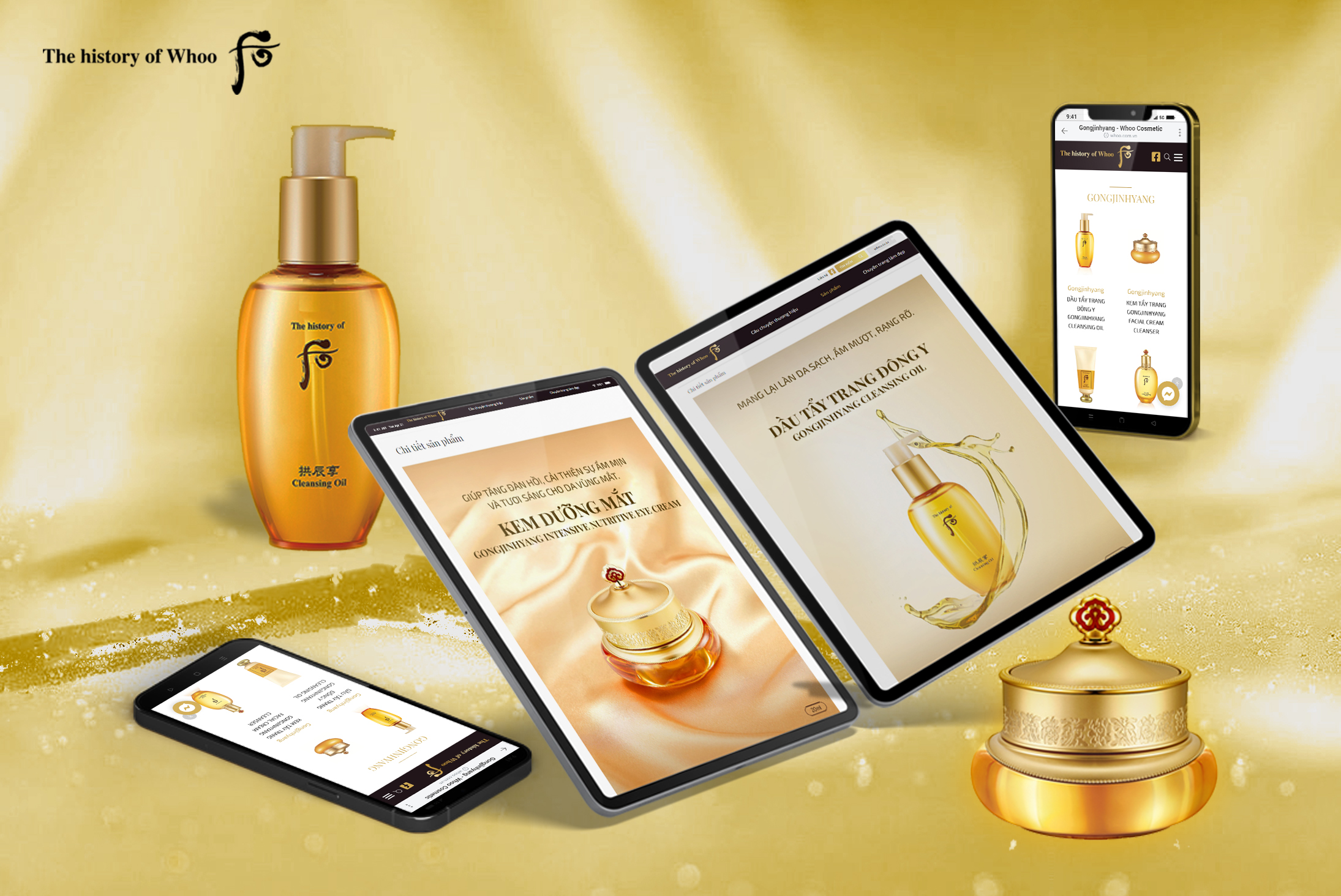 Giới thiệu các dòng sản phẩm mới nhất, những chương trình promotion và cách kể câu chuyện thương hiệu giúp khách hàng hiểu hơn về Whoo. Vì thế, thiết kế website Whoo đòi hỏi không chỉ về các tính năng cơ bản của một website thương hiệu mà trong thiết kế sao cho nổi bật được tính chất hoàng gia đặc thù mang phong cách Hàn Quốc xa xưa.