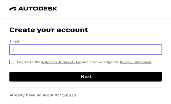 Hình 1: Giao diện tạo tài khoản Autodesk