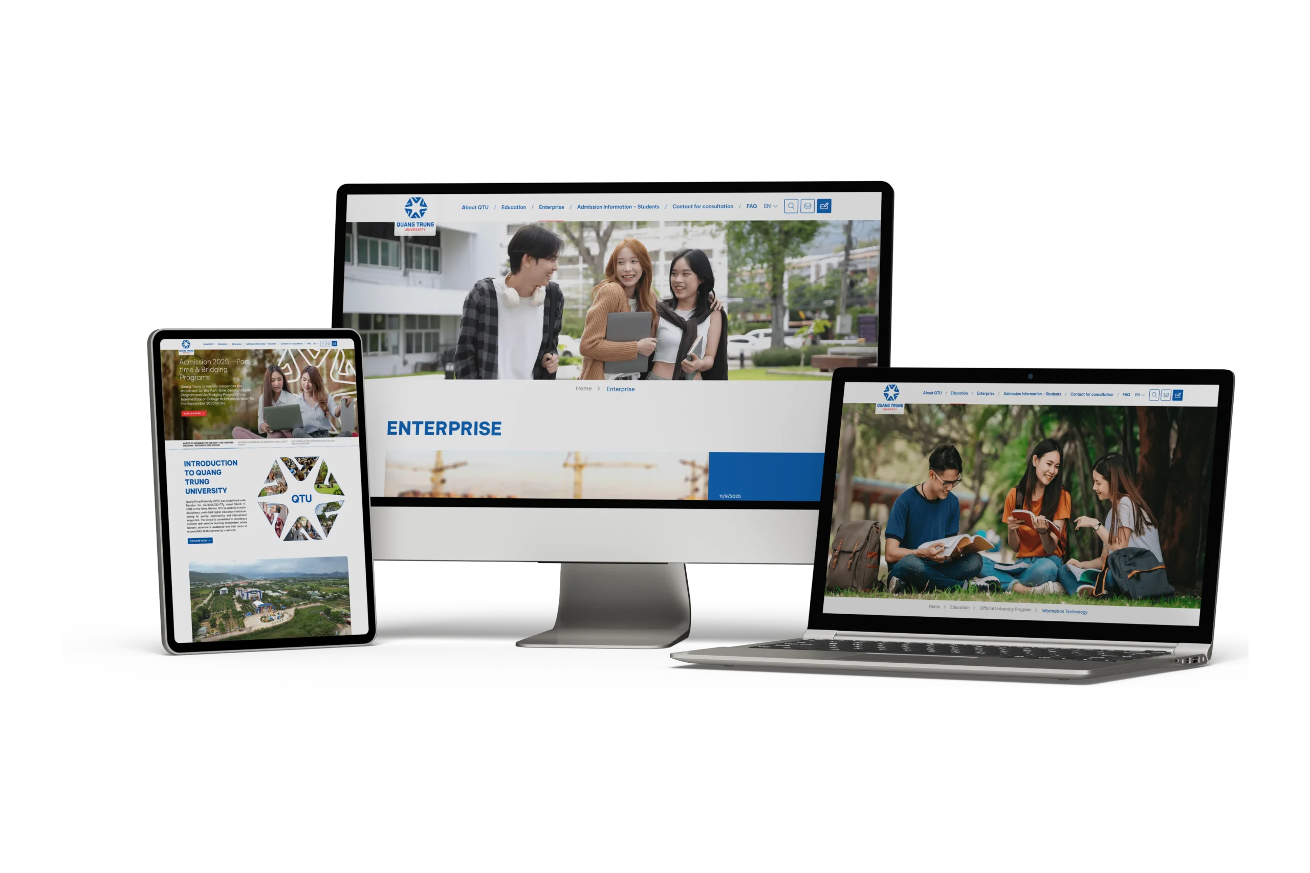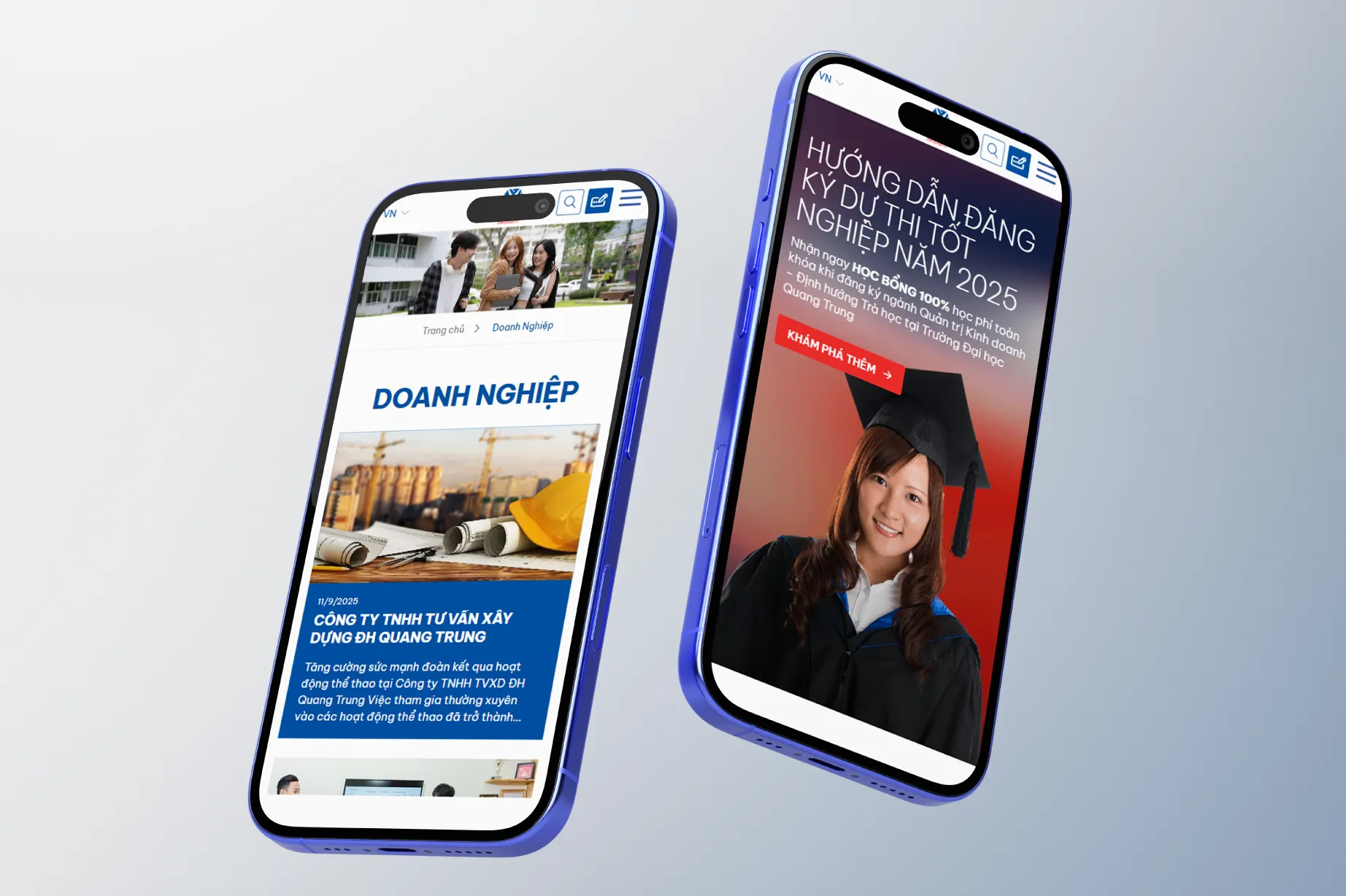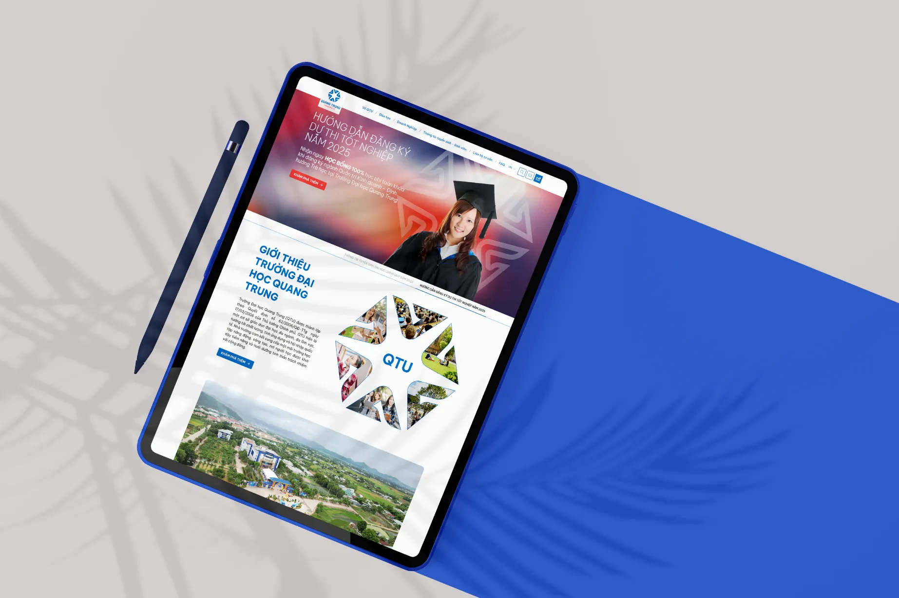 Trường Đại học Quang Trung (QTU) được thành lập theo Quyết định số 62/2006/QĐ-TTg của Thủ tướng Chính phủ, là trường đại học tư thục đầu tiên do Tập đoàn Hoàn Cầu đầu tư và phát triển. QTU nhanh chóng khẳng định vị thế là cơ sở giáo dục đại học đa ngành, đa lĩnh vực, hướng tới chất lượng đào tạo ứng dụng và hội nhập quốc tế. Sau hơn 19 năm hình thành và phát triển, trường đã đào tạo và trao bằng cho hơn 15.000 sinh viên, đạt tỷ lệ 99% sinh viên có việc làm đúng ngành sau tốt nghiệp, đồng thời xây dựng mạng lưới hợp tác với hơn 250 doanh nghiệp cam kết đồng hành trong tuyển dụng và thực tập. Để mở rộng tiếp cận ứng viên tiềm năng, minh bạch hóa quy trình đăng ký và tạo dựng uy tín với cộng đồng, QTU cần một website tuyển sinh chuyên biệt. Từ nhu cầu đó, trường đã chọn Cánh Cam làm đối tác chiến lược đầu tiên trong lĩnh vực thiết kế số, cùng nhau xây dựng một nền tảng vừa cung cấp thông tin, vừa truyền cảm hứng – công cụ giúp QTU khẳng định vị thế tiên phong trong hệ sinh thái giáo dục ứng dụng.