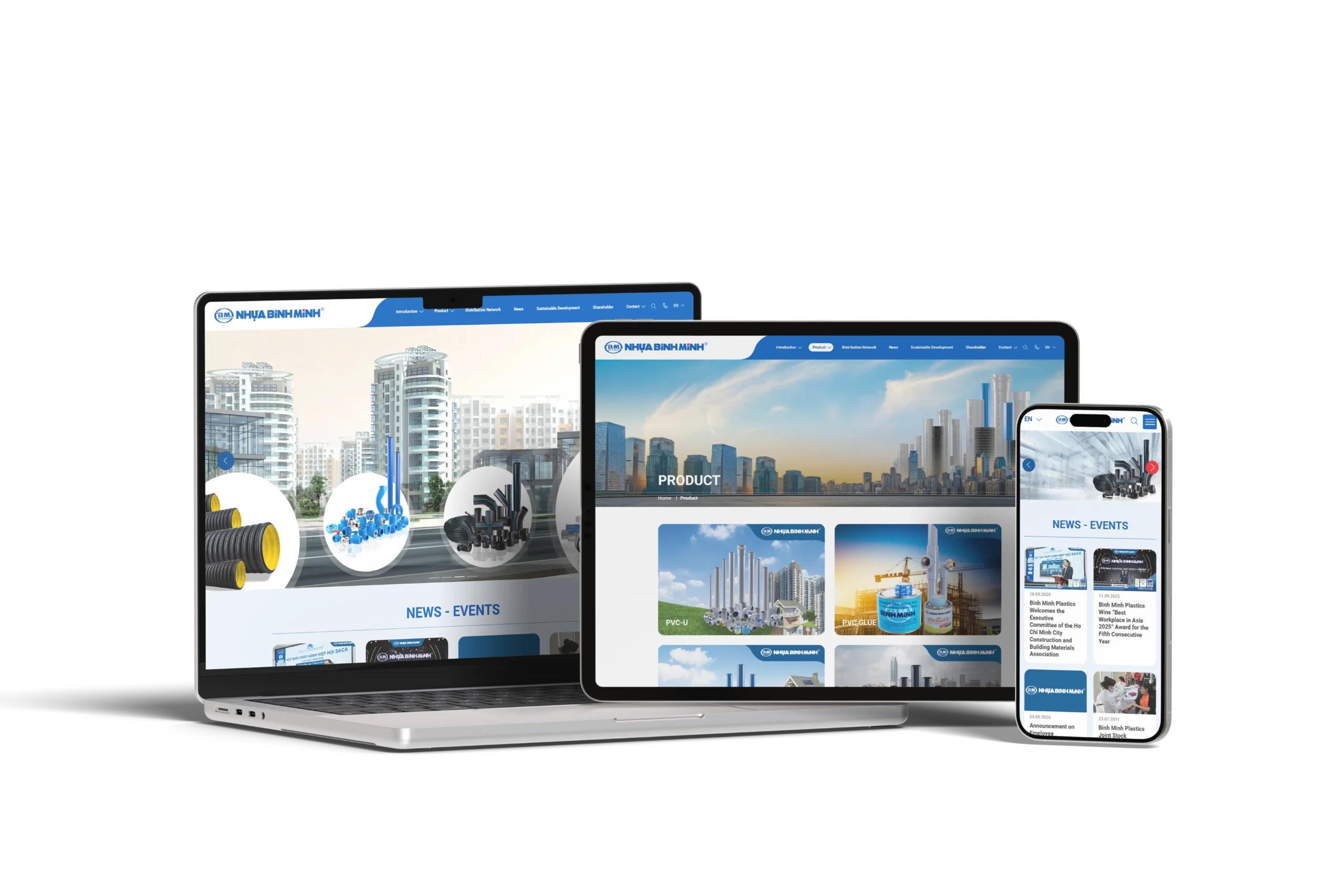 The collaboration between CanhCam and Binh Minh Plastic successfully concluded with a comprehensive website that accurately reflects the essence of the industrial plastic manufacturing sector: from its founding history in 1977, development milestones such as the 2023 launch of ASTM solvent cement, to detailed product catalogues with ISO and EN certifications, alongside practical project portfolios demonstrating applications in national infrastructure. This first collaboration not only delivered a professional digital platform but also opened potential for future expansion projects, contributing to the overall development of Vietnam’s industrial sector.