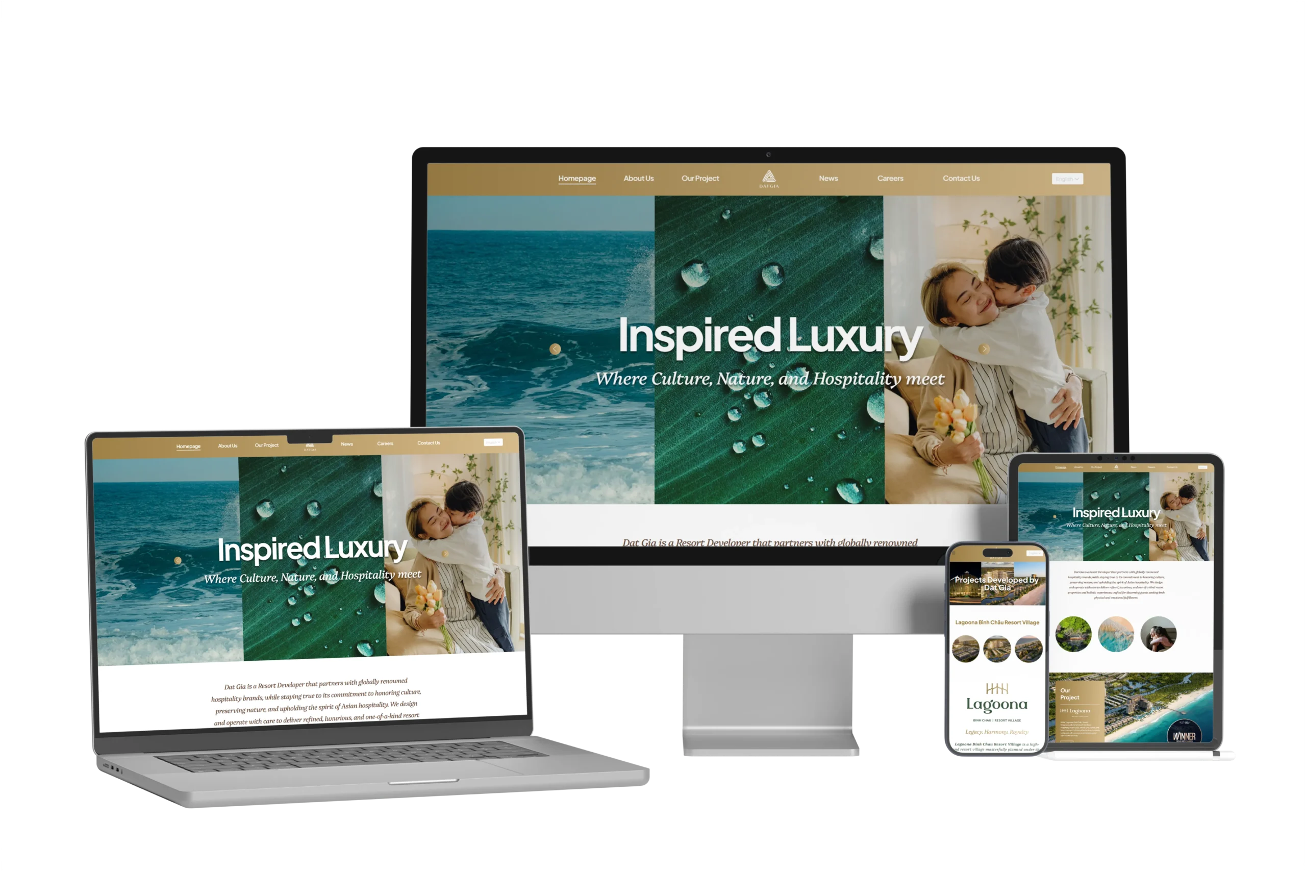 CanhCam’s methodology mirrors the artistry of crafting a luxury retreat. The process began with in-depth research into the Dat Gia brand—from its global partnerships to its cultural heritage philosophy—to ensure the WordPress platform reflects the company’s essence of elegance and harmony. The user experience design was structured with clarity, spotlighting key touchpoints such as Lagoona Binh Chau’s showcase and an editorial hub for updates.