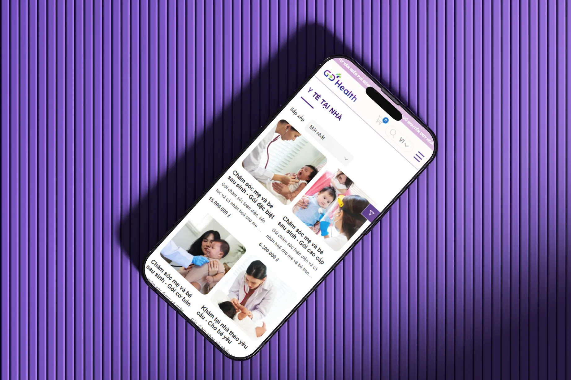 Seamless At-Home Service Booking & Medication Delivery Experience: CanhCam customized the website to clearly present the “at-home testing / at-home consultation / at-home medication delivery” service chain – helping GD Health stand out in the clinic and home healthcare sector.