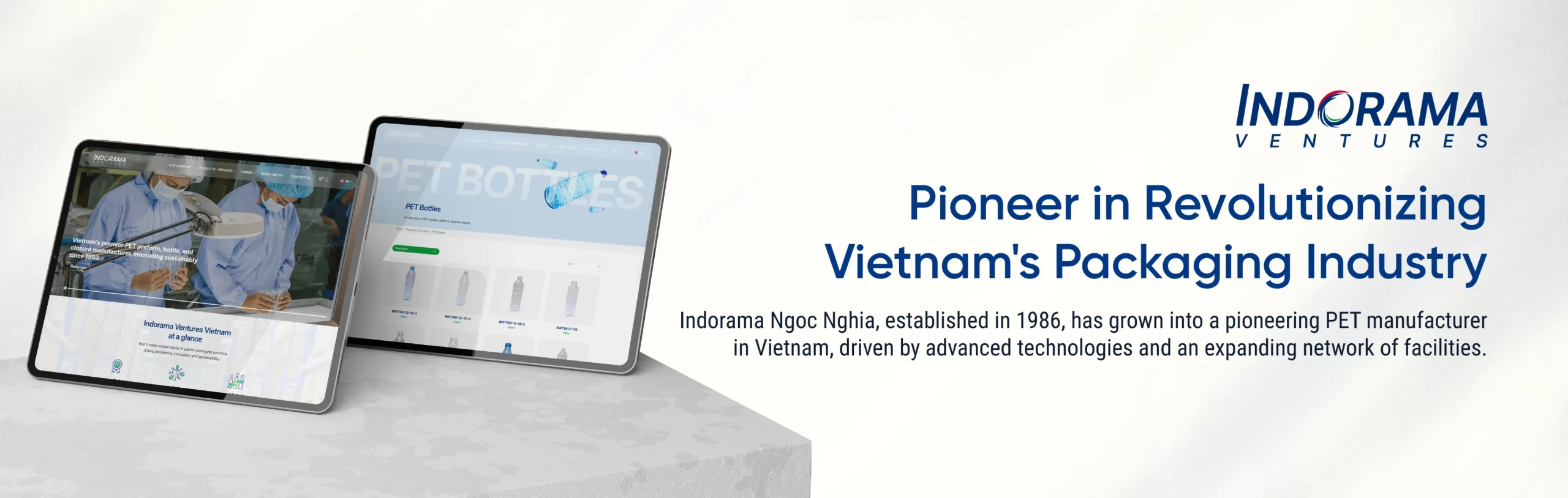 Indorama Ventures Vietnam, a member of the sustainable chemicals group Indorama Ventures, has a long development history starting from a small processing workshop in Ho Chi Minh City in 1986, officially established in 1993, and becoming a pioneer in PET production in Vietnam. Through continuous expansion with factories in TanBinh, CuChi, TayNinh, BacNinh, and later in HungYen, Ngoc Nghia has grown strongly, incorporating many leading technologies such as inline bottle blowing lines, short-neck PCO preforms, 38mm sterile preforms, and lightweighting solutions that reduce plastic usage. The website plays a crucial role in transparently providing information, showcasing industrial capabilities, and demonstrating a commitment to sustainable development—which is why Indorama Ventures Vietnam chose to collaborate with CanhCam to optimize its digital presence.