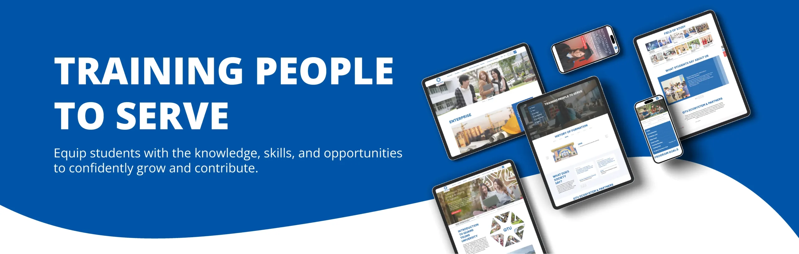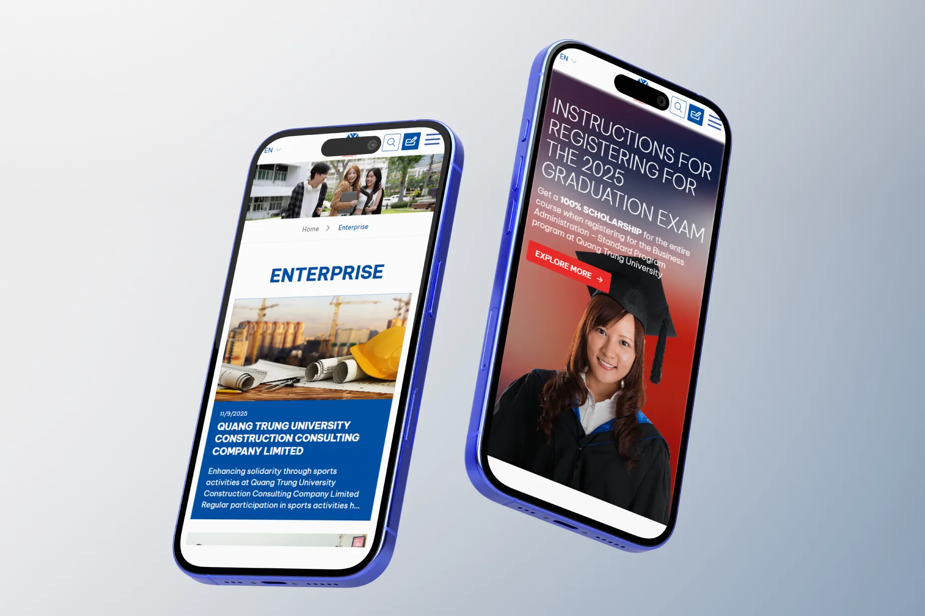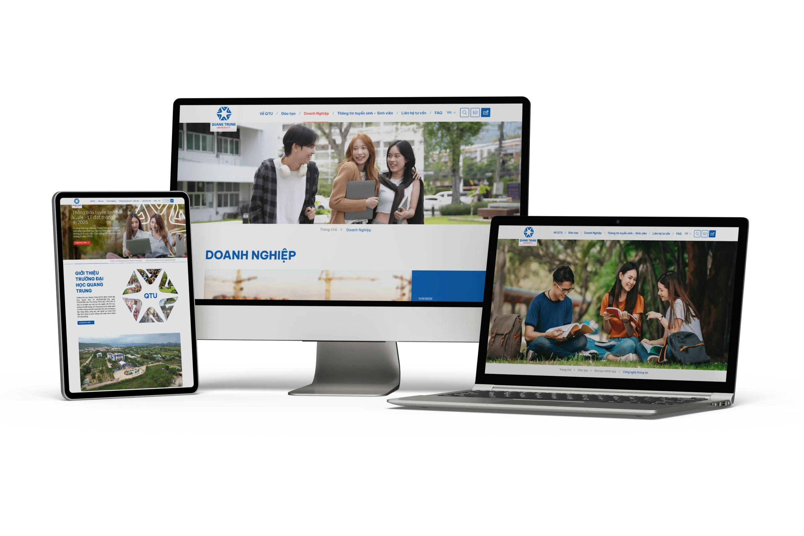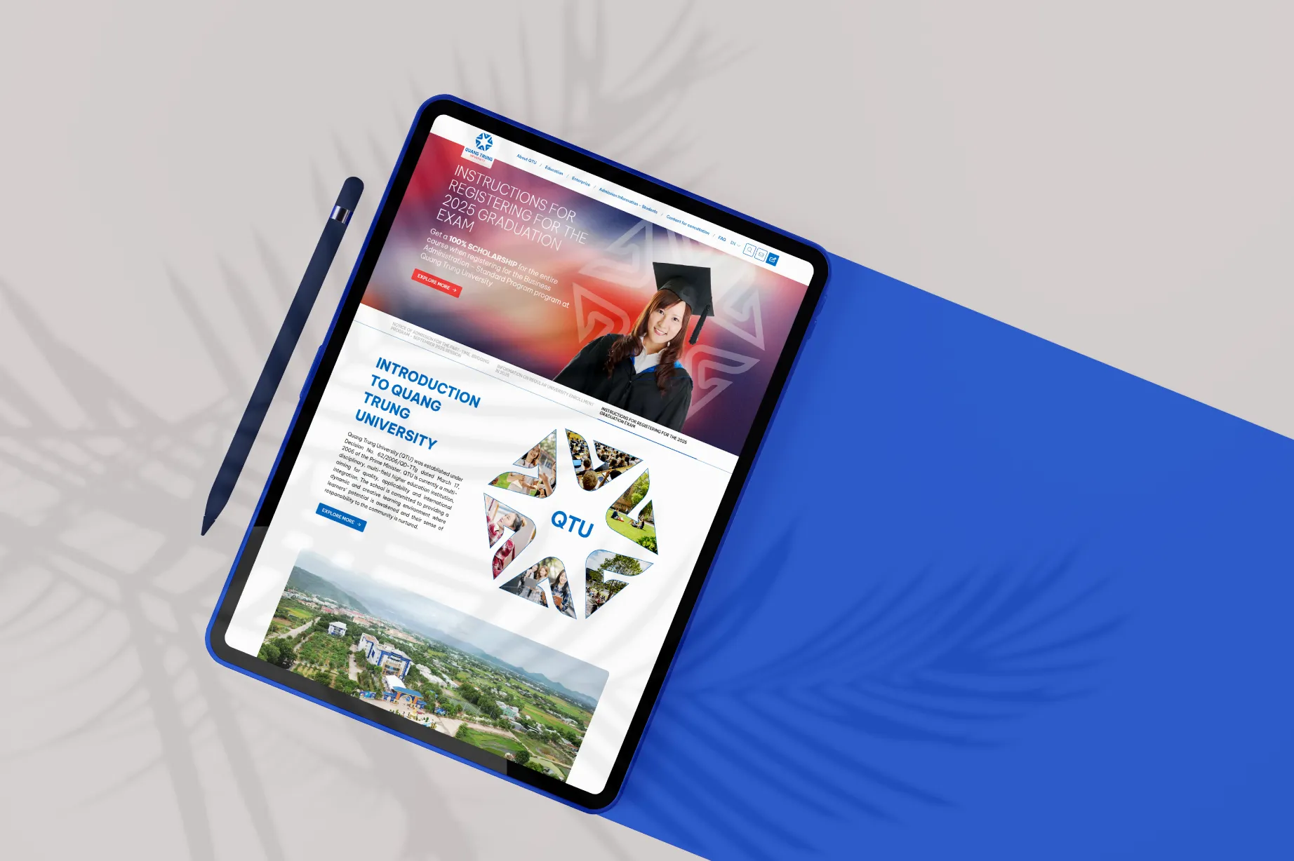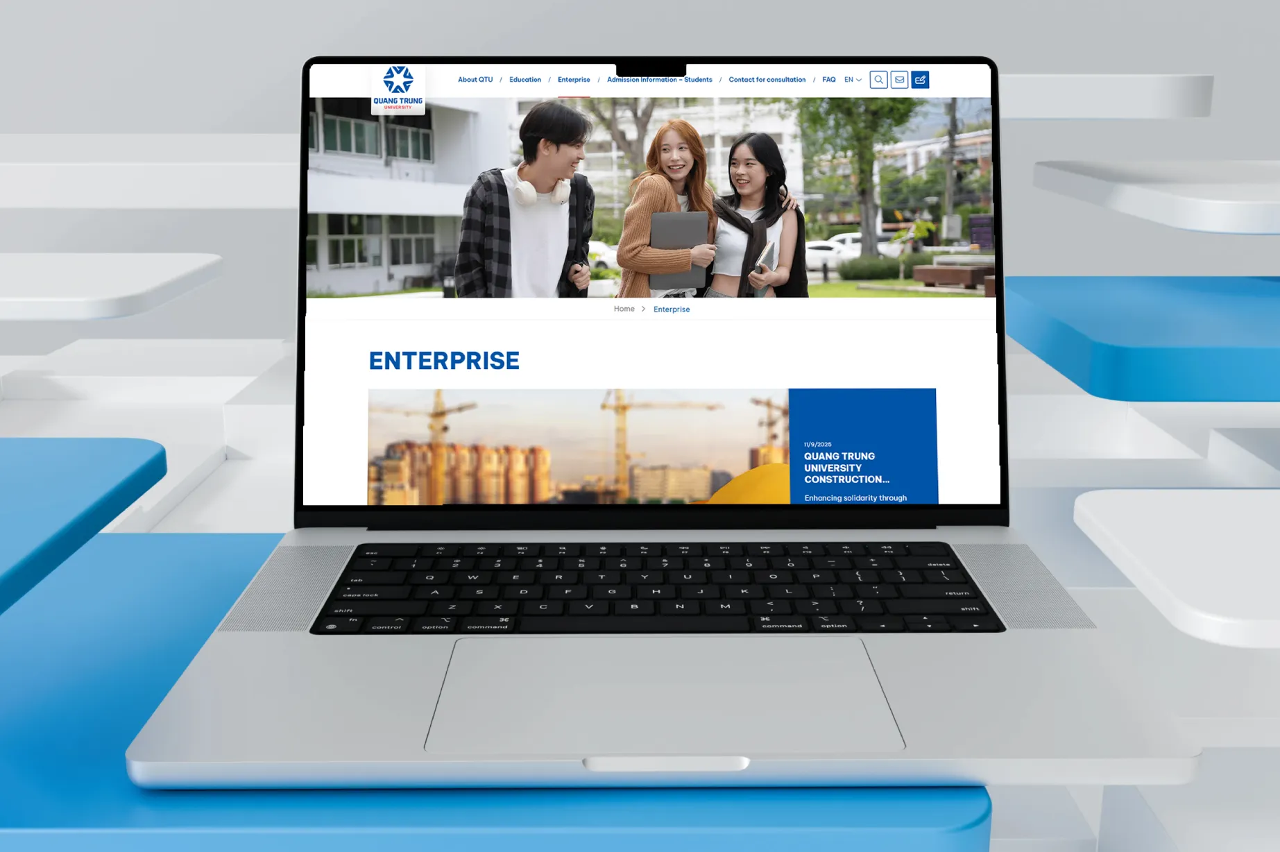 Quang Trung University (QTU) was established under Decision No. 62/2006/QD-TTg dated March 17, 2006, by the Prime Minister of Vietnam, marking it as the first private university invested and developed by the Hoan Cau Group. Operating under the University Charter issued with Decision No. 70/2014/QD-TTg dated December 10, 2014, QTU has swiftly established itself as a multi-disciplinary, multi-field higher education institution focused on applied training quality and international integration. Over more than 19 years of formation and development, the university has trained and graduated over 15,000 students, achieving a 99% employment rate in field-relevant jobs post-graduation, while building a network of collaborations with more than 250 enterprises committed to supporting recruitment and internships. QTU is not only a hub for nurturing specialized knowledge but also a catalyst for igniting creative potential and community responsibility in every student, through a dynamic learning environment and programs that seamlessly integrate theory with practice. In the context of Vietnam’s higher education shifting strongly toward digital platforms, the presence of a specialized admissions website becomes a pivotal factor for QTU to reach potential candidates broadly, streamline registration processes, and foster trust within the community. Recognizing this, QTU selected CanhCam as its first strategic partner in digital design to co-create a platform that is both informative and inspirational – a tool empowering QTU to affirm its pioneering role in the applied education ecosystem.