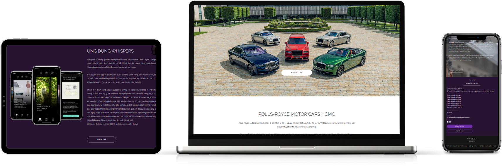 It is no exaggeration to say that designing the website of Rolls-Royce Motor Cars Ho Chi Minh City presents a huge challenge for our team. We invested considerable time assessing other Rolls-Royce websites to find key similarities as well as think outside-the-box unique features to set our website apart. Ultimately, through the combined efforts of both teams, Rolls-Royce Motor Cars Ho Chi Minh now possesses a highly effective branding website, successfully conquering potential Vietnamese customers.